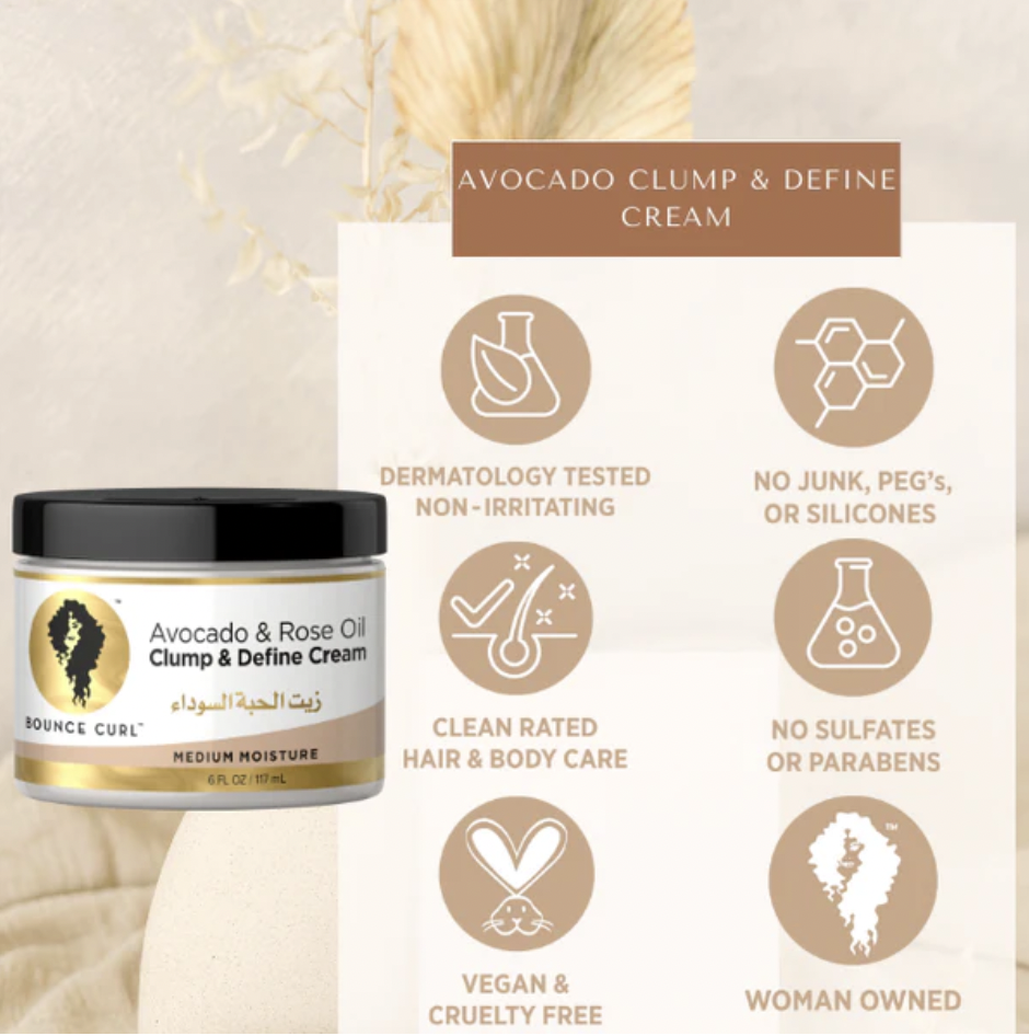 De Clump & Define Cream is een multifunctionele luxe leave-in crème die je haar tegelijkertijd licht vasthoudt en verzacht. Het kan volumineus haar geven en licht aanvoelen. Ingrediënten zijn onder meer 10 exotische oliën uit het Midden-Oosten, Noord-Afrika en de mediterrane gebieden: biologische zwarte zaadolie, avocado, Egyptische Abessijnse olie, Marokkaanse roos, arganolie en meer! Het is geconcentreerd; je hoeft maar een kleine hoeveelheid te gebruiken om geweldige resultaten te krijgen! Deze pot gaat een tijdje mee!